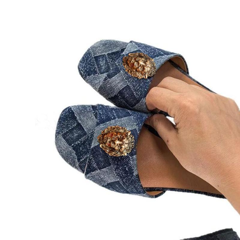 Новые женские плоские шлепанцы из денима с головой льва, джинсовая сумка, женские модные шлепанцы на низком каблуке и набор с сумкой — купить товар онлайн с бесплатной доставкой по всему миру!