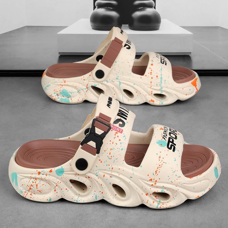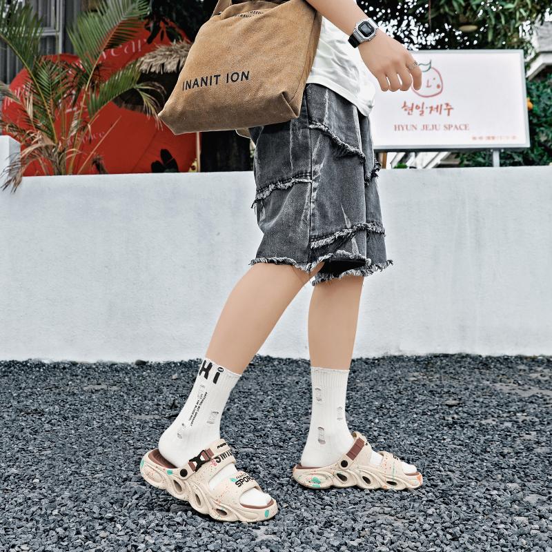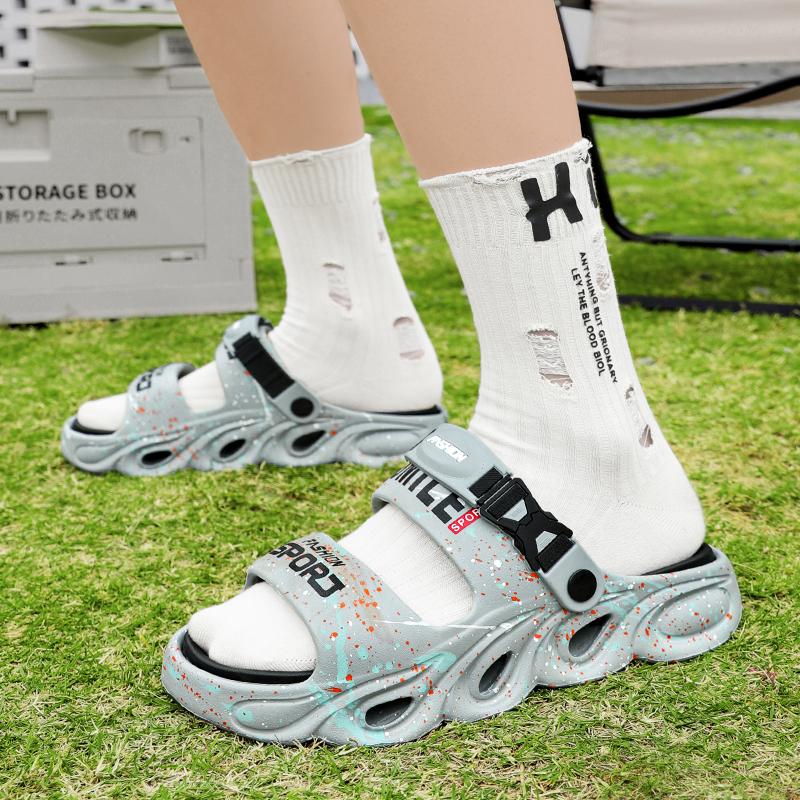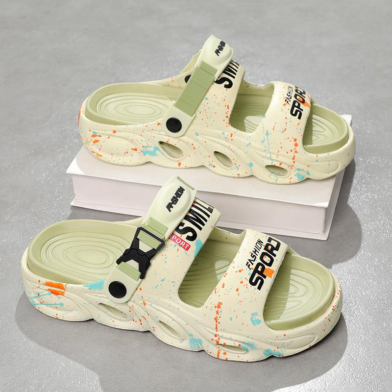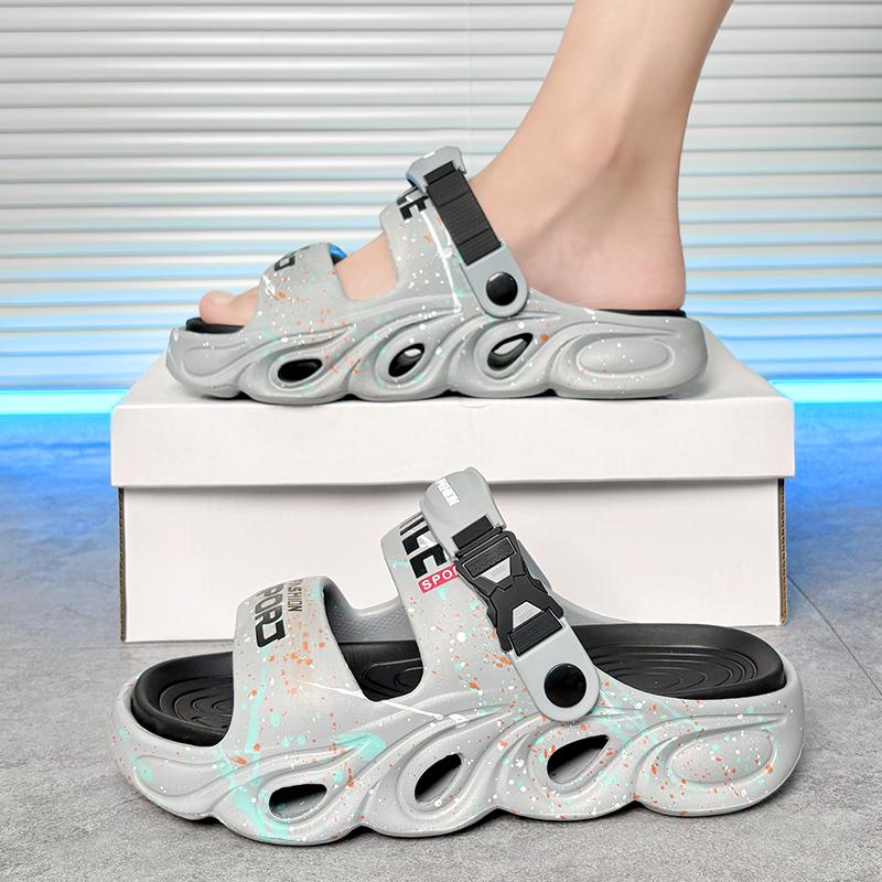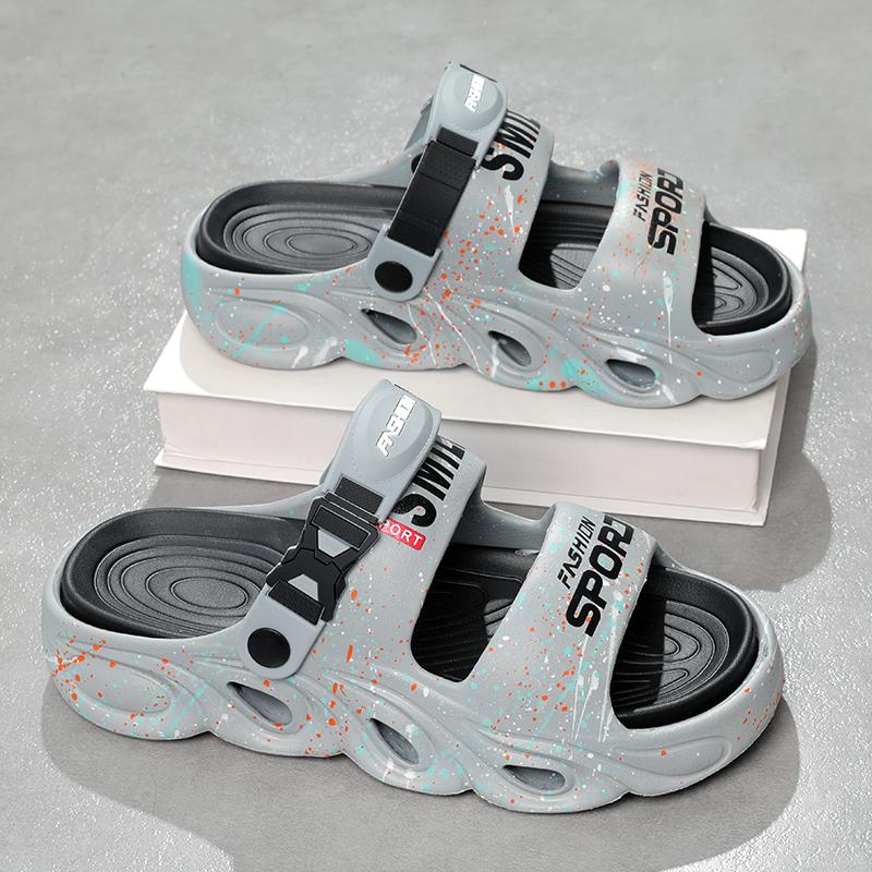 Мужские повседневные тапочки лето новые мягкая подошва нескользящие пляжные туфли дышащие сандалии двойного назначения классические молодежные спортивные тапочки