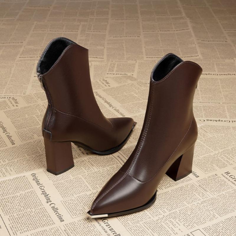 2025Новое поступление Женские ботильоны Высококачественные Повседневные Кожаные Ботинки Пуанты Высокий Каблук Ботинки Плюшевые Теплые Женские Зимние Боты