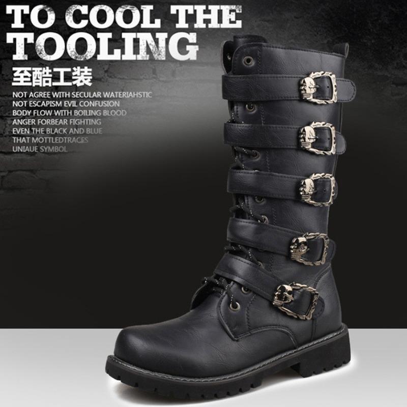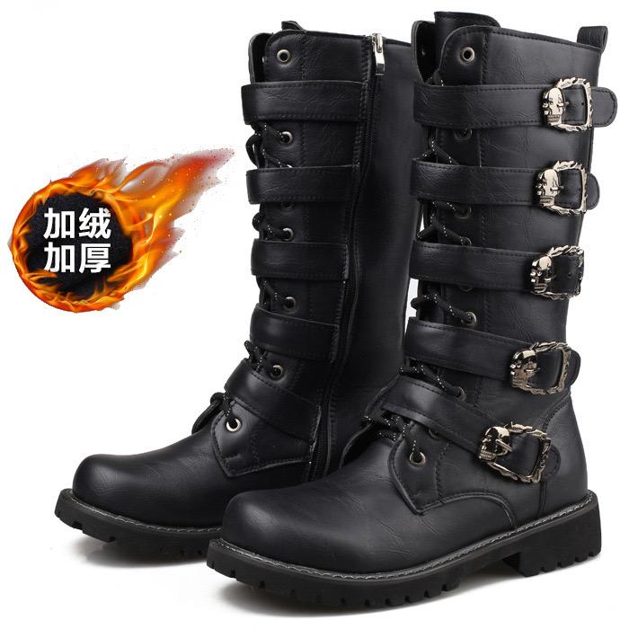 Высококачественные мужские готические ботинки в панк-стиле, уличные мотоциклетные ботинки до середины икры, кожаные ботинки, зимние плюшевые теплые ботинки для мужчин