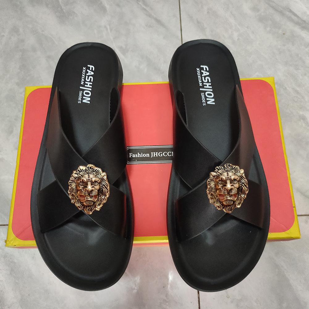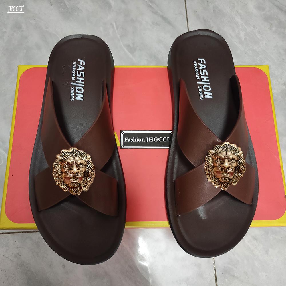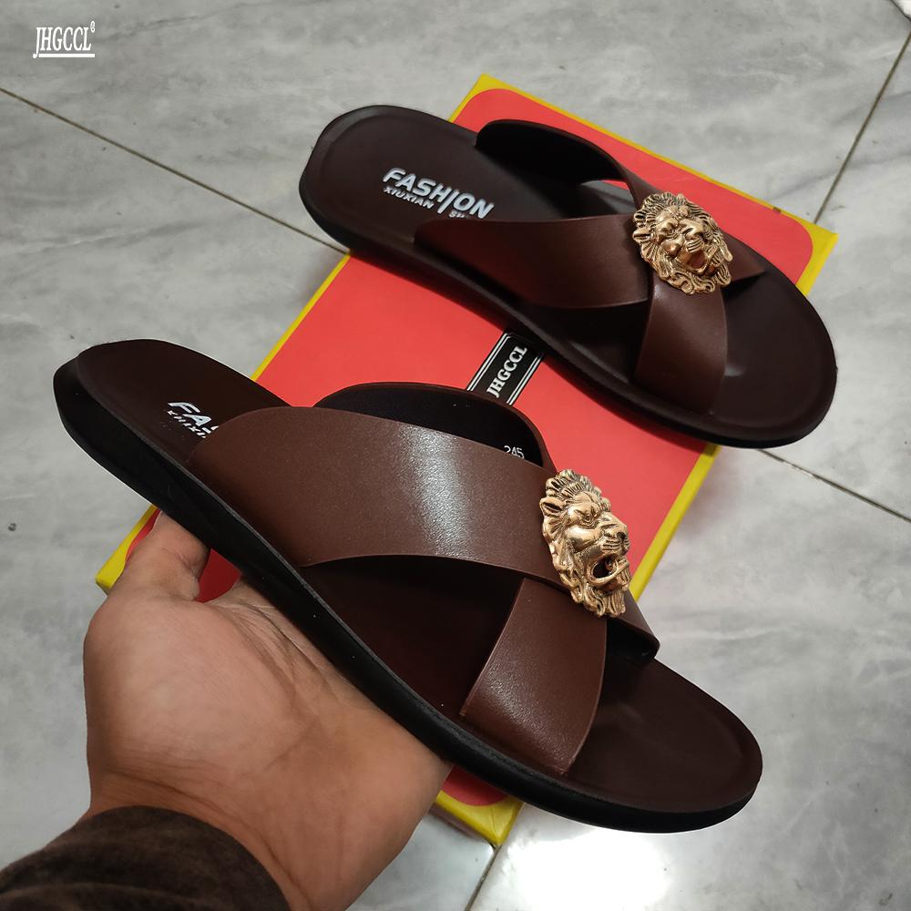 Новые стильные шлепанцы для мужчин Повседневные тапочки из коровьей кожи дизайнерские кожаные пляжные туфли женские Большой размер 46, 47, сандалии женские