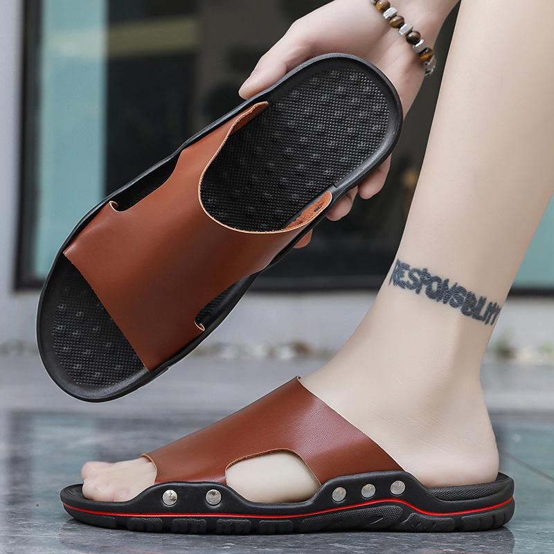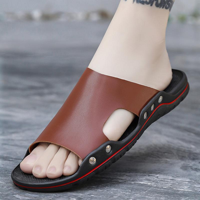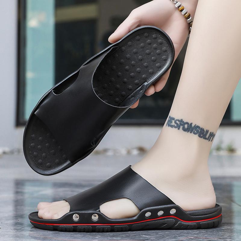 Сандалии Мужские Кожаные Классические Летние Мужские Шлепанцы Мягкие Черные Шлепанцы Шлепанцы из ПУ кожи Легкие Шлепанцы EVA для Мужчин