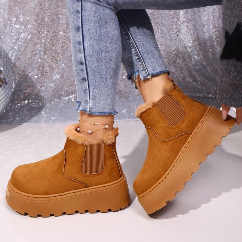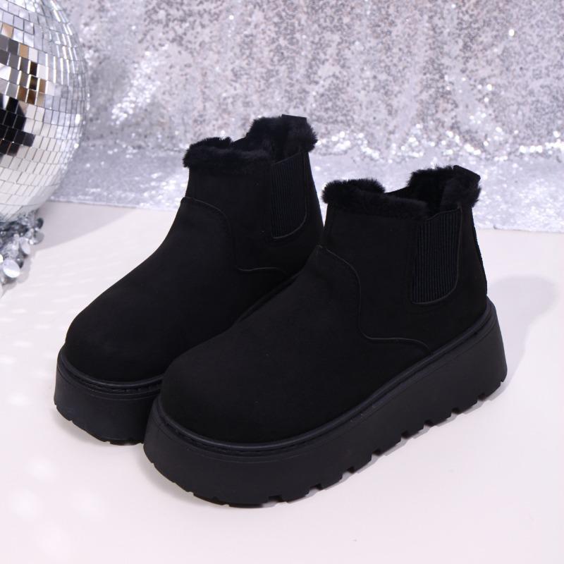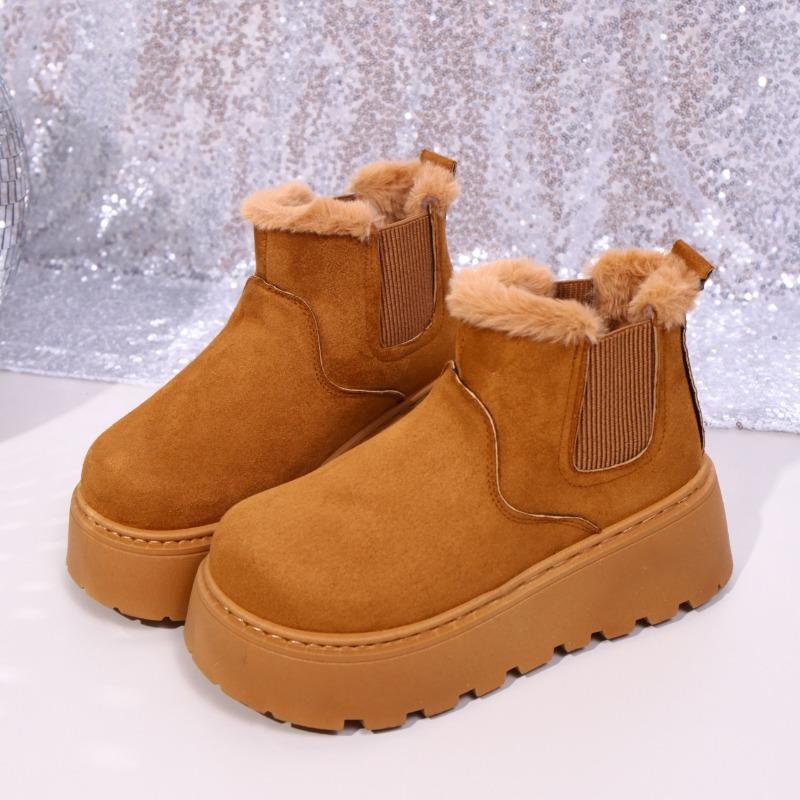 Женские зимние сапоги, зимние толстые плюшевые теплые хлопковые ботинки 2026Новые замшевые ботильоны, уличные нескользящие ботинки на платформе, зимние короткие сапоги
