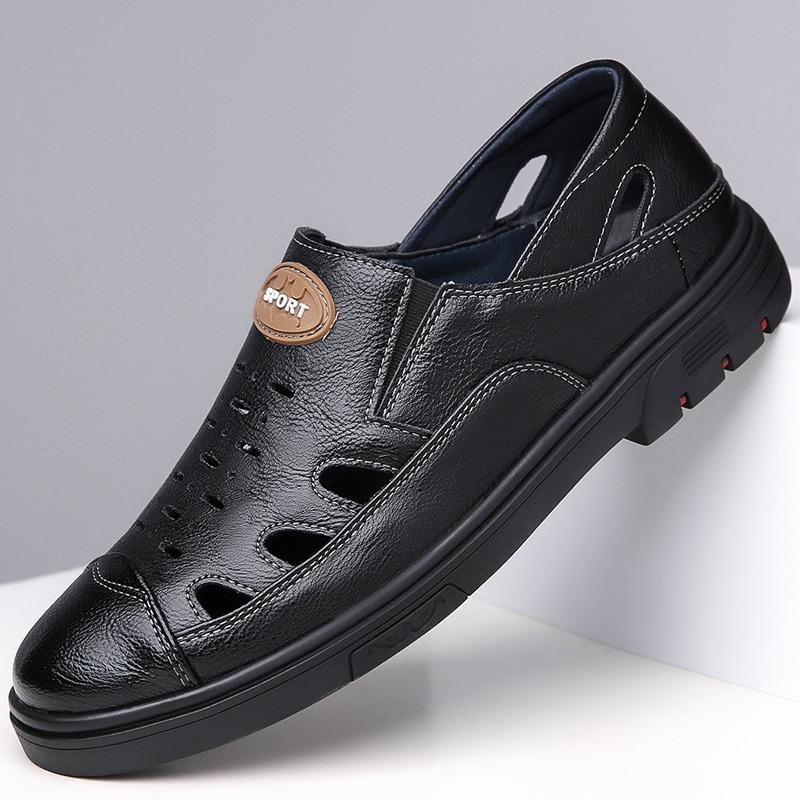 Сандалии большого размера для мужчин Летние дышащие сандалии с вырезами Роскошные сандалии из коровьей кожи для мужчин Повседневные деловые сандалии