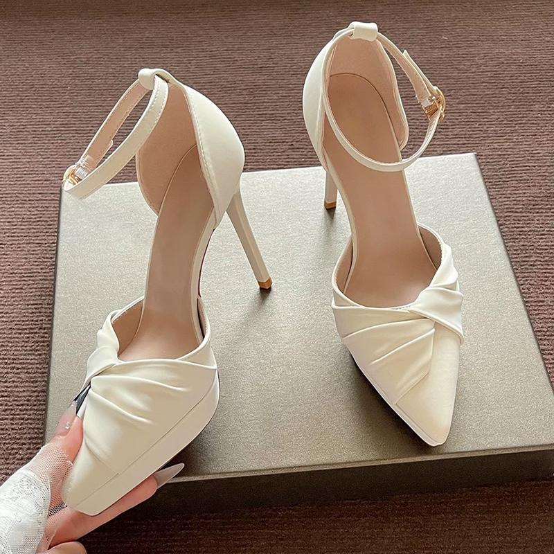 Женские Сандалии на Высоком Каблуке Туфли-Лодочки с Острым Носком Роскошные Туфли на Шпильке 2025 Осень Дизайнерские Сексуальные Элегантные Вечерние Chaussure Femme