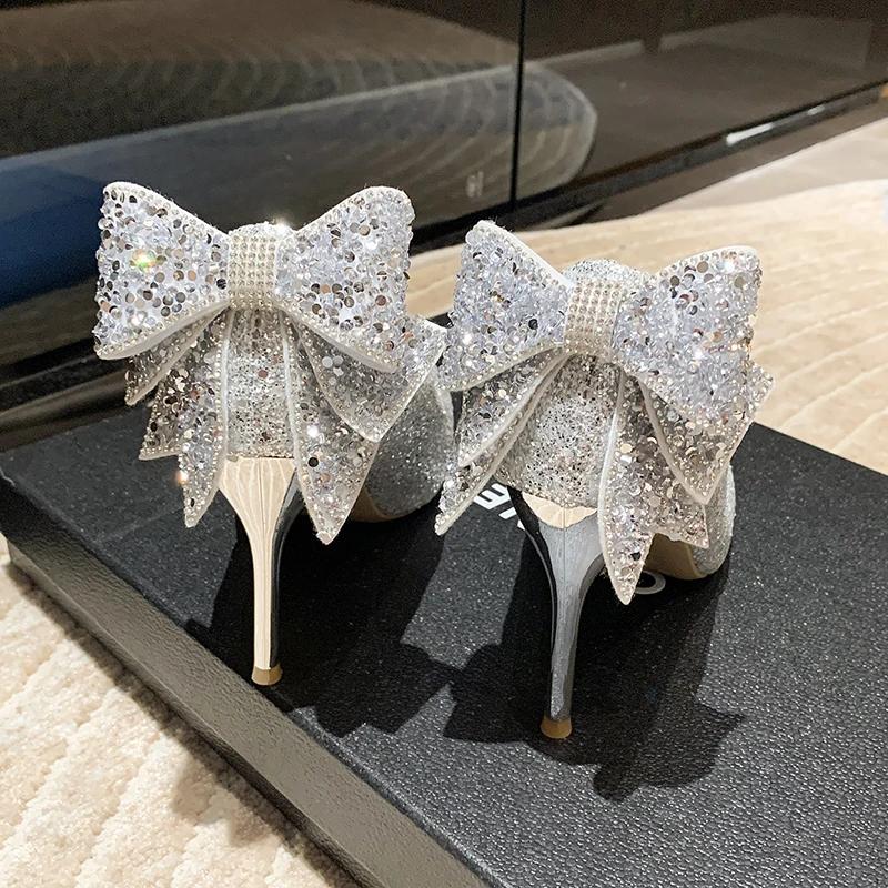 Новая женская обувь серебристого цвета, женская летняя обувь, свадебные туфли для невесты, стразы, острый носок, очень высокий каблук, Zapatos Mujer