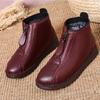 Зимние женские ботильоны Теплые ботинки для мамы На плоской подошве Удобные Нескользящие Застежка-молния спереди Женская обувь — купить товар онлайн с бесплатной доставкой по всему миру!