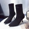 Носки Сапоги Женские Эластичные Тканевые Шпильки Каблук Сексуальные Ботильоны С Острым Носом Ботильоны Женские Тонкие Каблуки Вечерние Туфли