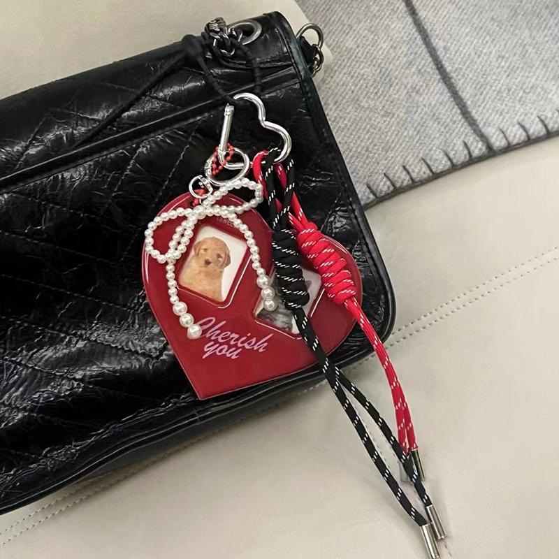 Подвеска-брелок в форме сердца из плетеной веревки, красно-черная нейлоновая веревка, милая подвеска-брелок для сумки в виде собаки, аксессуары для сумок KTY