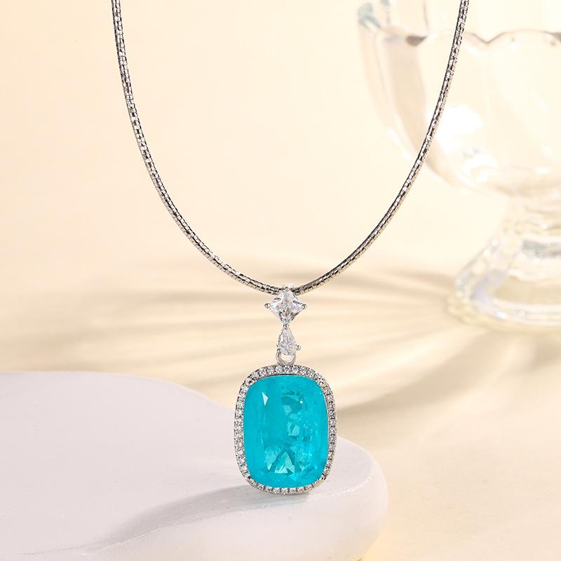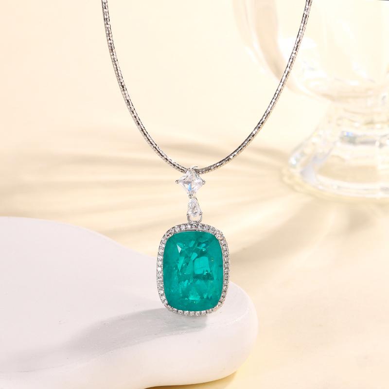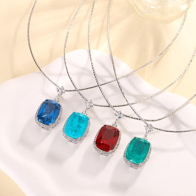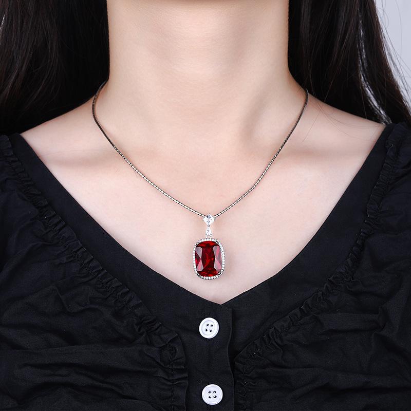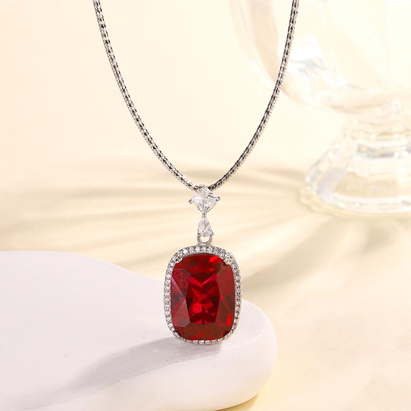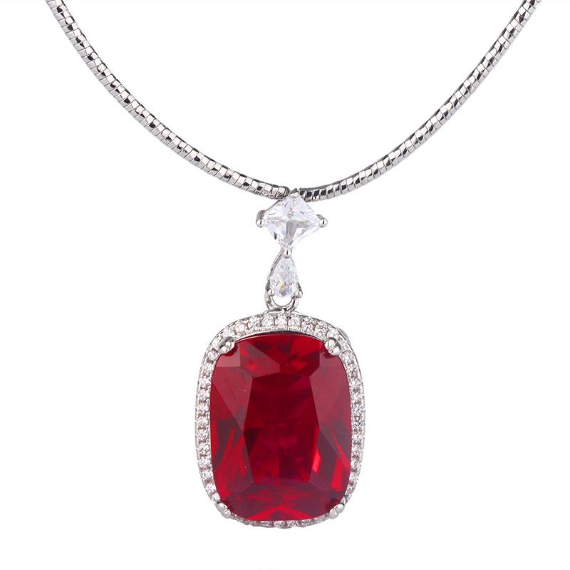 Ювелирные изделия Медное основание с золотым покрытием Имитация красного корунда Толстый прямоугольный 15 * 20 Подвеска Ожерелье