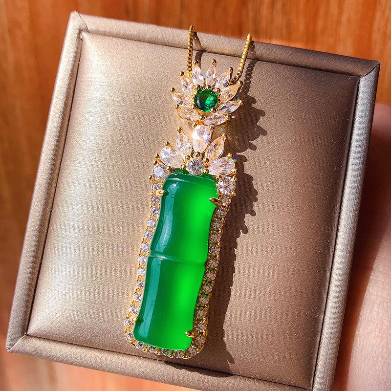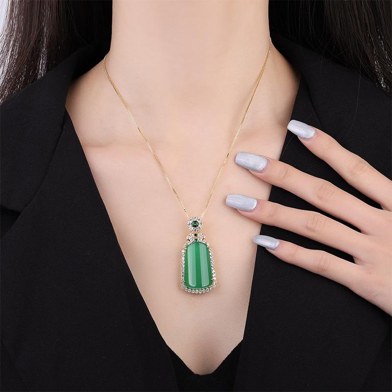 Ювелирные изделия Медное основание Позолоченный Инкрустированный Жадеитом Зеленый Золотой Кулон С аннотацией Независимо от бренда Ожерелье Жадеитовый Кулон