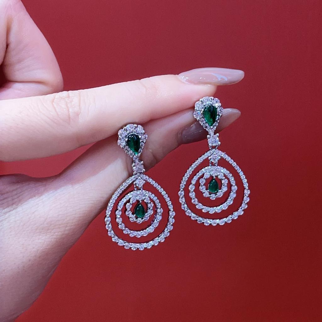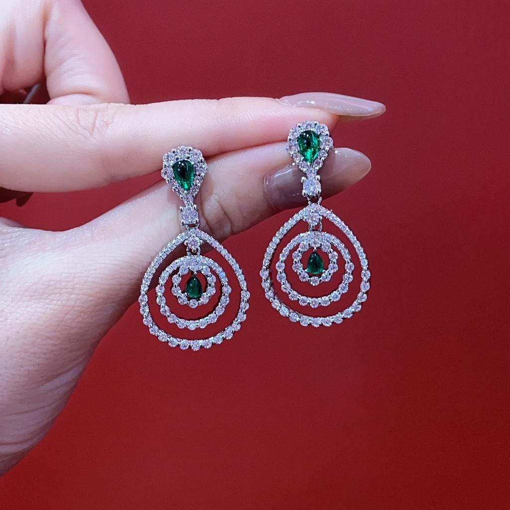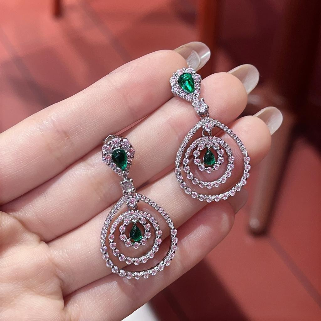 Роскошные серьги-клипсы с изумрудом и бриллиантами, с полым кружевом, большие серьги-капли из кристалла, серьги-кисти с полным бриллиантом