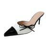 2025 New High-heeled 7CM Sandals for Women, Color Blocked Butterfly Bow Pointed Plus Size Women's Shoes