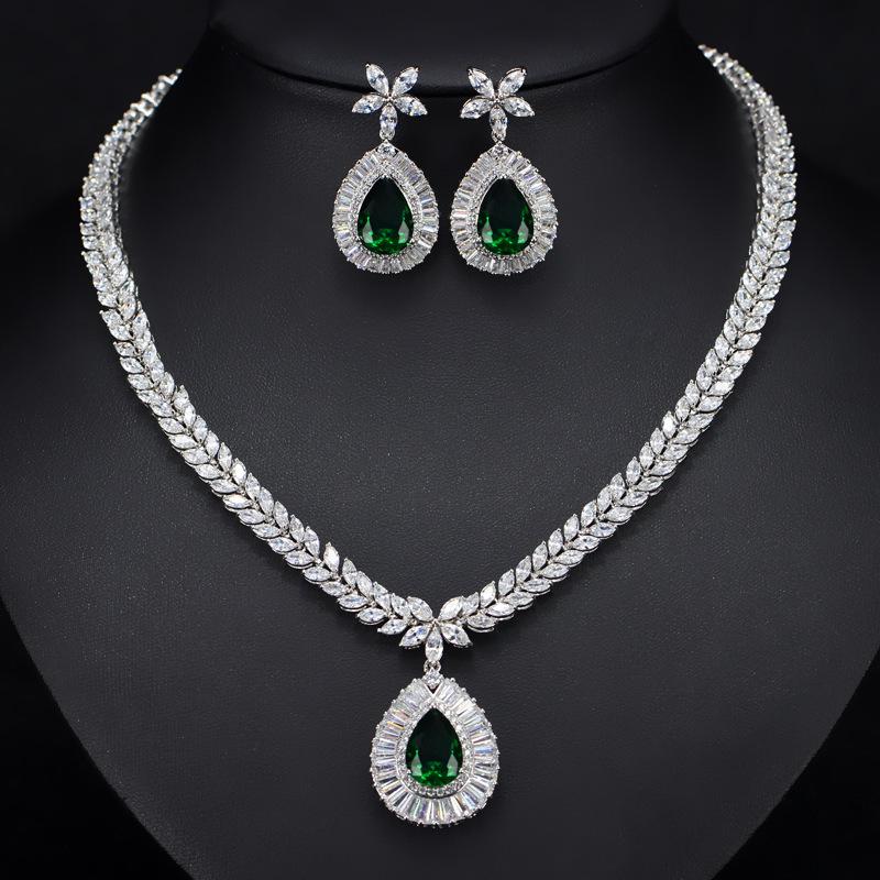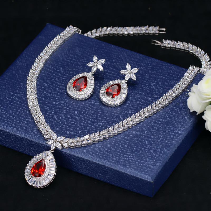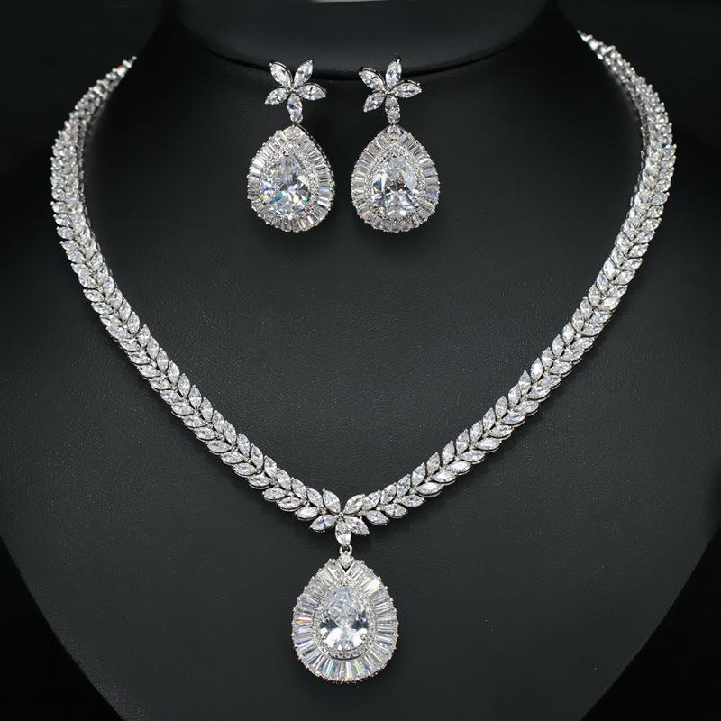Женский ювелирный набор, Покрытый настоящим белым золотом с драгоценными камнями, Ожерелье Серьги Набор из двух предметов Свадебный набор Цепочка