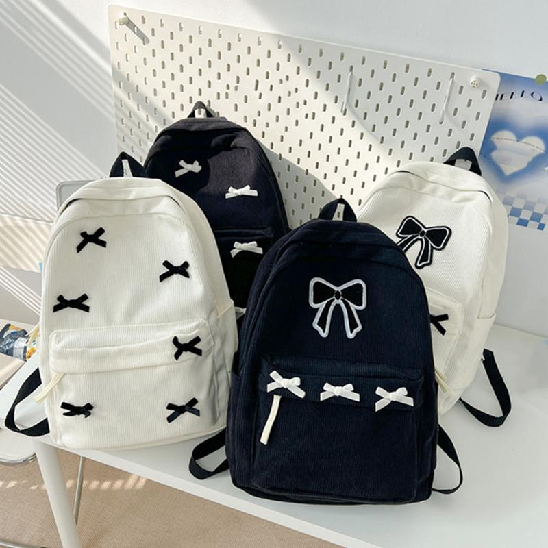 Милые рюкзаки с бантиком в эстетичном стиле, легкие школьные ранцы, студенческий рюкзак в милом стиле для девочек, женский вельветовый колледжный мочилас KTY