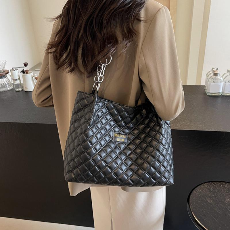 Новая Популярная Женская Сумка из ПУ Кожи Большой Вместимости Зимняя Высококачественная Стеганая Дизайнерская Сумка на Плечо для Поездок на Работу, Сумка-Шопер, Сумка-Тоут KTY