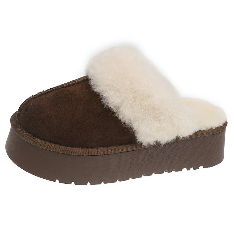 Зимние женские ботинки на толстой подошве, бархатная верхняя одежда с сумкой на голове, полушлепанцы, новинка 2025 года, ленивые популярные хлопковые туфли Мао Мао