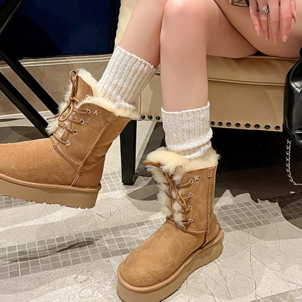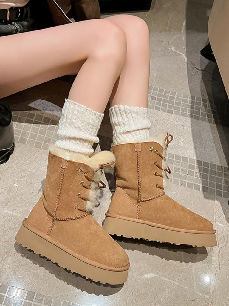 Женские зимние ботинки 2025 новые на толстой подошве с увеличением высоты, меховые, цельнолитые, утепленные хлопковые ботинки, водонепроницаемые и нескользящие, модные короткие ботинки с мехом