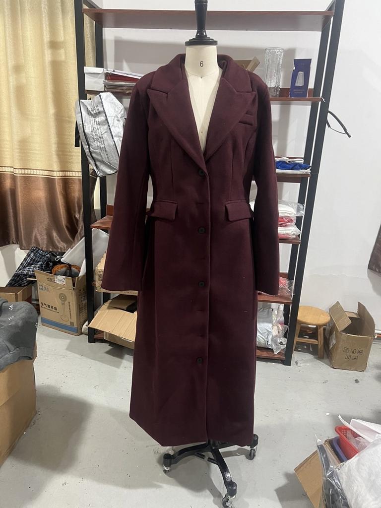 Женский длинный фиолетовый однобортный тренч с лацканами с насечкой