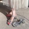 Носить с высококлассными сандалиями на толстом каблуке, женственной серебристой юбкой и летними туфлями на высоком каблуке, пляжная модель 2025 года с квадратным носком в одно слово