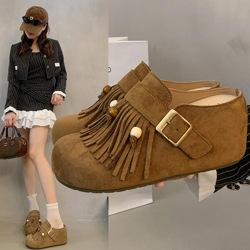 Доска из овчины~ Бокены женские туфли на платформе 7 см новые уродливые и милые мюли на одной педали на толстой подошве ретро баотоу полушлепанцы