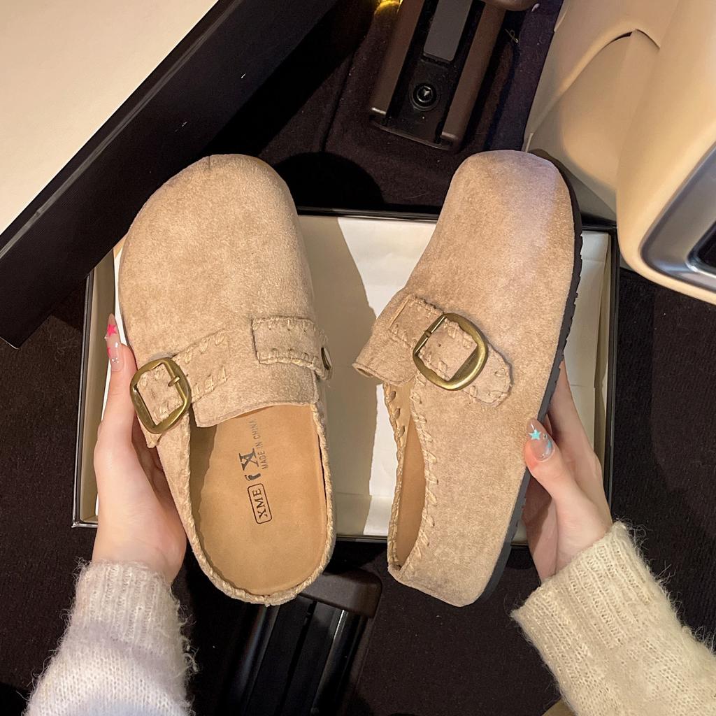 Шлепанцы с толстой подошвой и внутренней платформой, женские, осень 2025, новые, ретро, ленивые, для улицы, Boken, полушлепанцы, повседневная обувь
