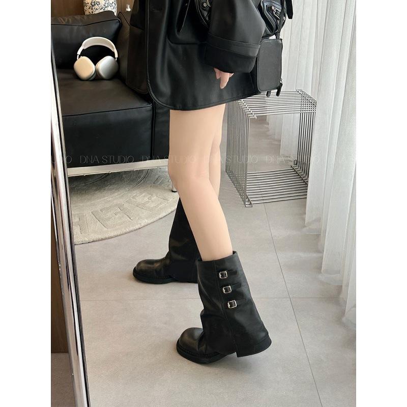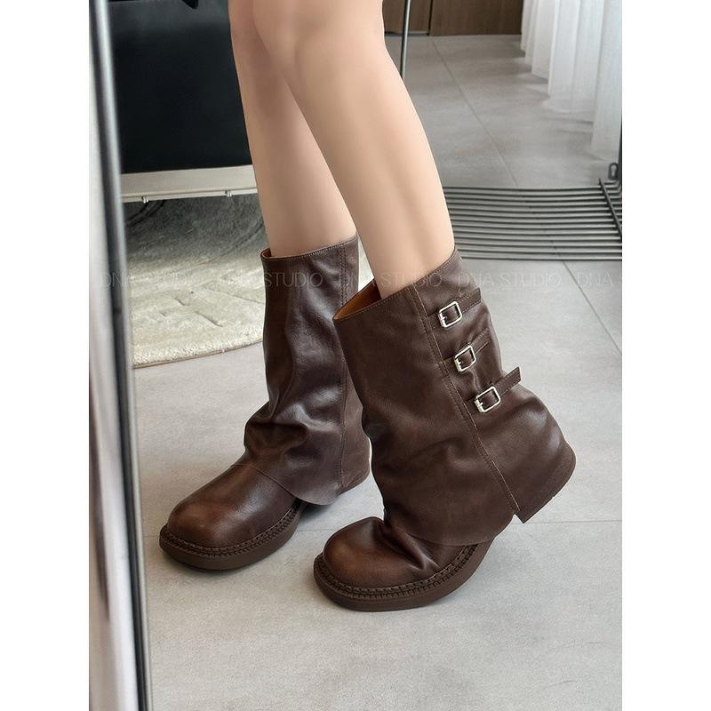 Версия из коровьей кожи~ ретро сапоги-трубы брюки квадратный носок толстая подошва короткие ботинки универсальные и тонкие пряжка ремня западные ковбойские сапоги ботинки Мартин