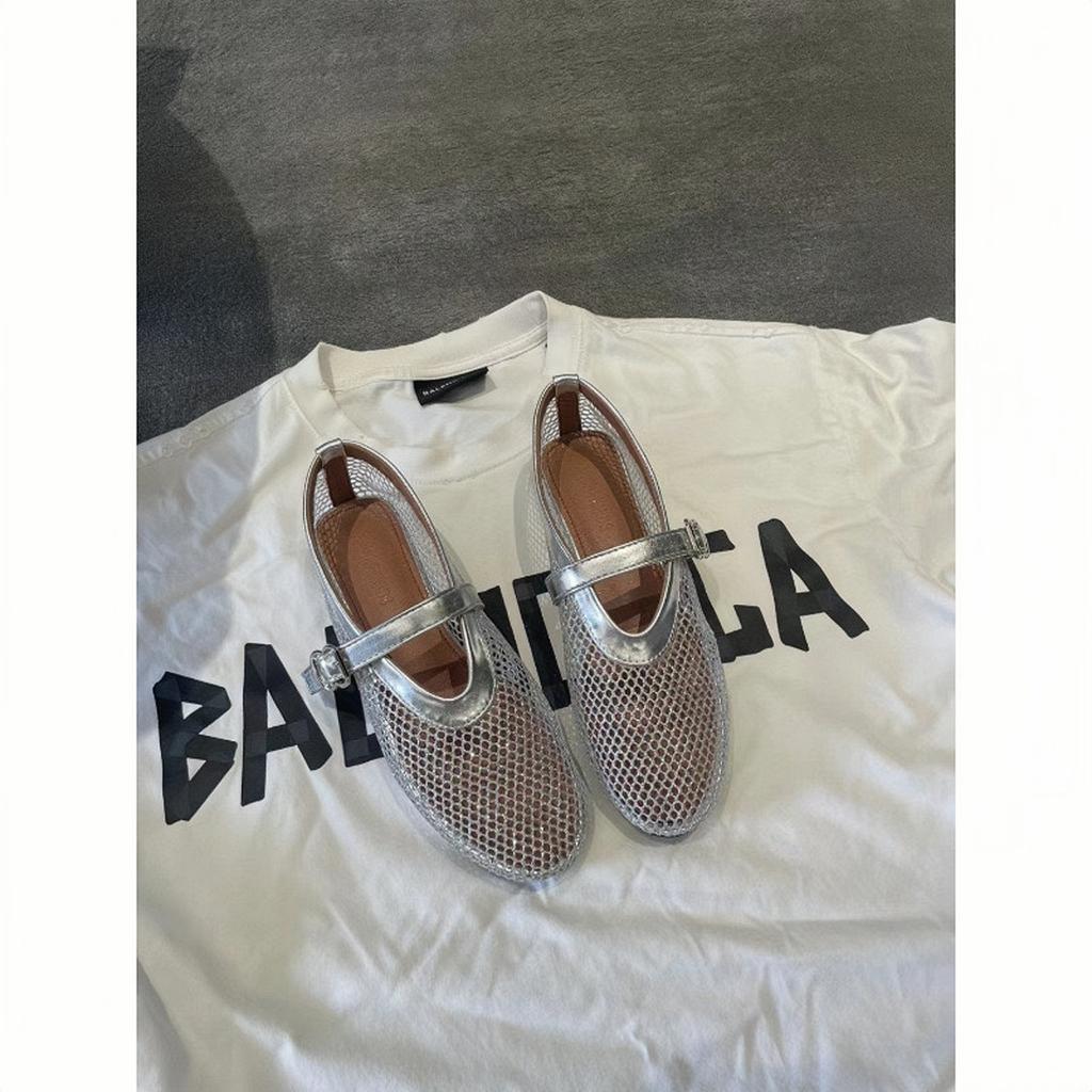 Версия из овчины~ сетчатые туфли Мэри Джейн женские летние новые нишевые с круглым носком и неглубоким вырезом, плоские балетки