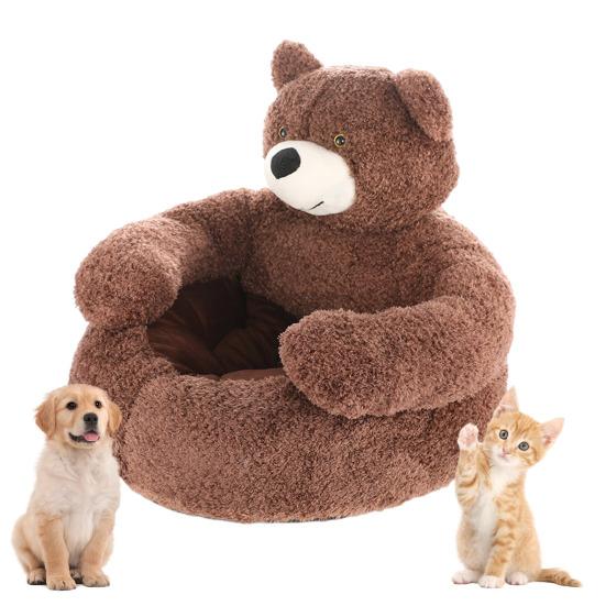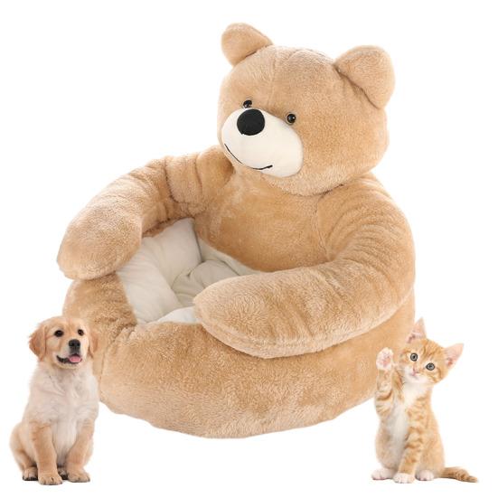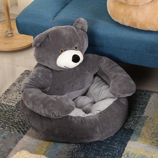 Плюшевый мишка Обнимашки Комфорт: Этот диван для питомца в форме очаровательного плюшевого мишки с рукой обеспечивает ощущение теплых объятий, облегчая тревогу вашего питомца и создавая чувство тепла и товарищества.