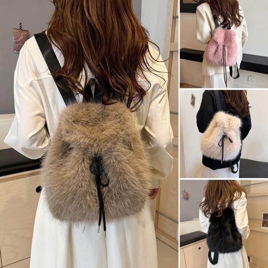 Стильная Простота: Оцените сдержанную элегантность простого, но шикарного дизайна этого пушистого рюкзака.. Благодаря компактному размеру он идеально подходит для переноски необходимых вещей без усилий, будь то для школы, работы или досуга.