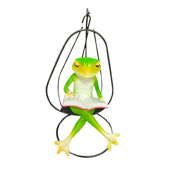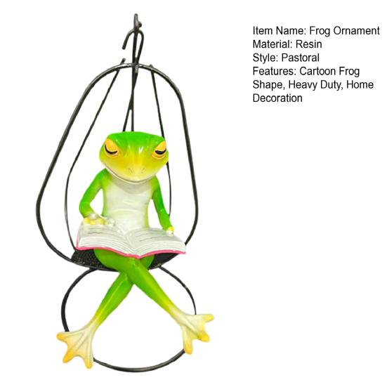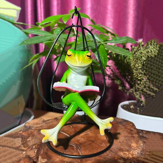 Подвесное кресло Гамак Читающий Лягушка Статуя Мультяшная Зеленая Лягушка Фигурка Смола Миниатюрная Скульптура Животного Для Дома