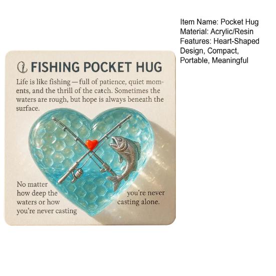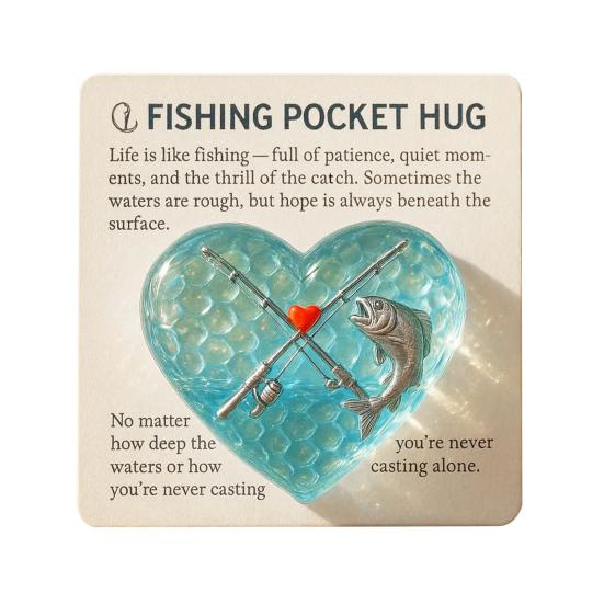 Рыбацкие карманные объятия служат сердечным напоминанием о терпении, силе и дружбе, и идеально подходят для рыболовов, ищущих покоя на воде.. Его компактный дизайн позволяет легко носить его с собой, куда бы вы ни пошли, что делает его идеальным подарком для пап, дедушек, мужей и друзей, которые любят рыбалку.. Добавьте позитива в свою повседневную рутину с этим продуманным сувениром, который передает послание: «Ты никогда не рыбачишь в одиночку».