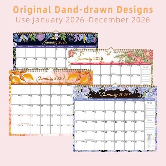 Представляем настенный календарь на 2026 год, украшенный красивым цветочным дизайном с милым фоном из цветочного узора, который добавляет элегантности любому пространству.. Этот календарь — не только практичный инструмент, но и восхитительное украшение для вашего дома, офиса или школы.. Прочные пружины облегчают подвешивание, а страницы ежемесячного обзора позволяют быстро проверять даты, не перелистывая несколько страниц.