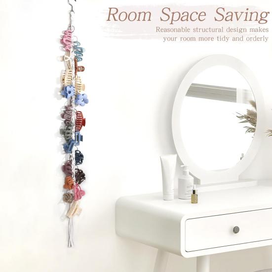 Прочный и надежный: Изготовленный из высокопрочного хлопкового шнура и металла, устойчивого к окислению, этот органайзер для заколки-краба обеспечивает долговечное использование с высокой грузоподъемностью, предлагая стабильное и надежное хранение без опасений ржавчины или поломки.