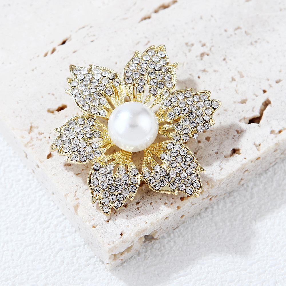 Мода Полный Бриллиант Шесть Листьев Подсолнух Камелия Цветок Жемчужная Брошь Булавка Булавка Женская Защита Окружающей Среды Ювелирные Изделия
