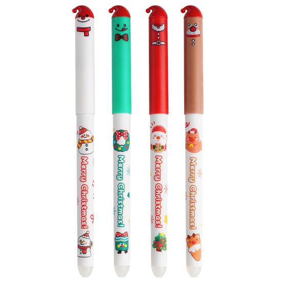 Праздничные рождественские дизайны: Почувствуйте дух праздника с нашим набором из 4 стираемых шариковых ручек с очаровательными рождественскими персонажами - Санта-Клаусом, снеговиком и оленем. Идеально для добавления нотки радости в ваши письменные задания.