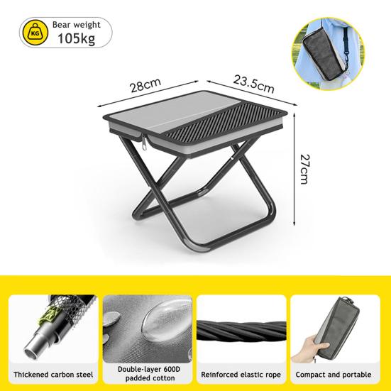 Прочный и легкий: Этот табурет, изготовленный из высококачественной серой углеродистой стали, прочный, но сверхлегкий, что гарантирует долговечность во время приключений на открытом воздухе.