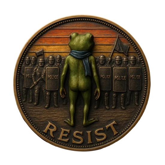 Отпразднуйте креативность и стойкость изысканной монетой «Портлендская лягушка». Тщательно изготовленная с 3D рельефной гравировкой и бронзовой отделкой, эта коллекционная монета демонстрирует сложное искусство и символизм.. Выгравированное словом «Сопротивляйся», оно воплощает мужество и оптимизм, призывая вас бесстрашно встречать вызовы..