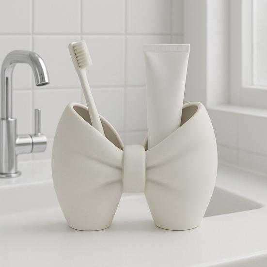 Дизайн в форме банта имеет открывающиеся пазы с обеих сторон, обеспечивая удобное хранение различных предметов без опрокидывания.. Будь то подставка для зубных щеток или настольный органайзер для ручек, он помогает держать ваши предметы первой необходимости в порядке.