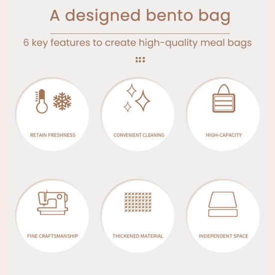 Улучшенная теплоизоляция: Этот ланч-бокс, изготовленный из ткани Оксфорд с трехслойной изоляцией, превосходно сохраняет температуру пищи слой за слоем.. Наслаждайтесь продленной свежестью и оптимальным термоконтролем как для горячих, так и для холодных блюд.