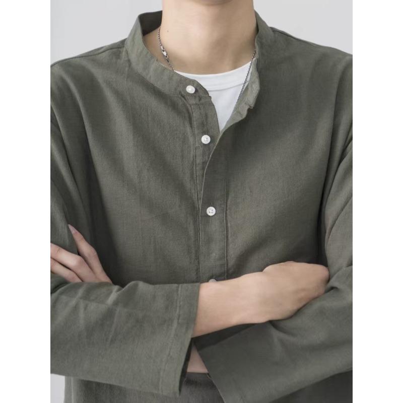 Новые однотонные топы с длинным рукавом без воротника для мужчин, хлопок и лен, удобные, повседневные, свободные, на подкладке — купить товар онлайн с бесплатной доставкой по всему миру!