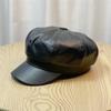 Осень и Зима Женская Восьмиугольная Шляпа с Большой Головой Кожаная Шляпа Художника Корейская Версия ПУ Большая Кепка с Козырьком Британский Универсальный Берет Мужская Зимняя