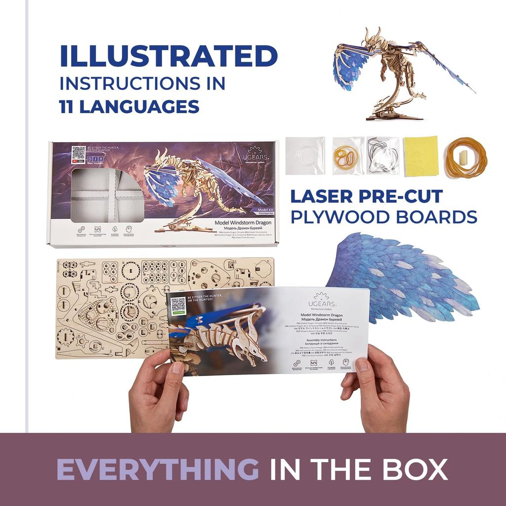 Деревянный пазл Ugears Windstorm Dragon, не требует клея или инструментов, 3D-пазл с инструкцией по сборке