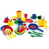 В комплект входит: 1 кастрюля с крышкой, 4 чашки, 4 тарелки, 4 вилки, 4 ложки и 4 ножа.