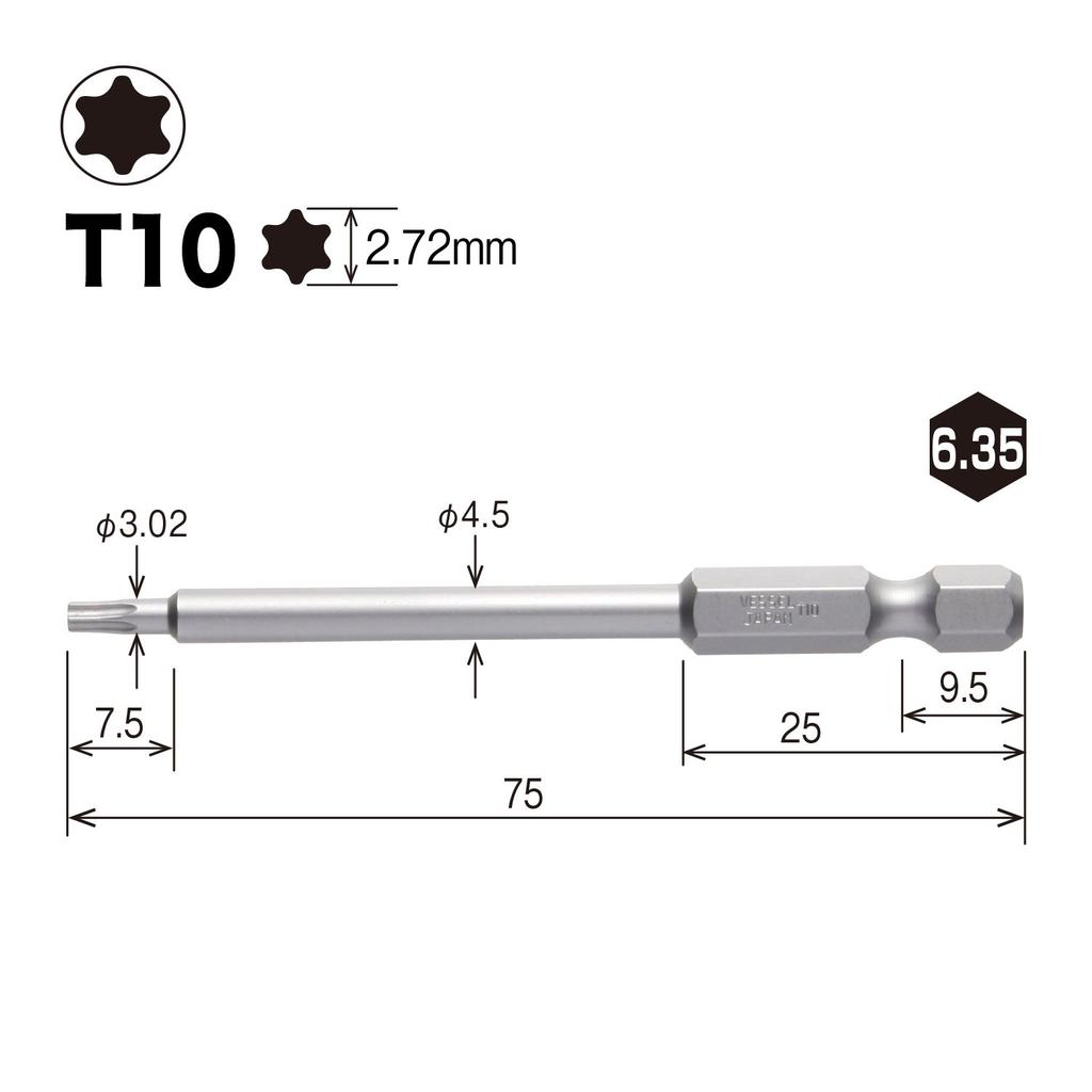 [Amazon.co.jp Exclusive] VESSEL Torx Bits, T10 x 75mm, 10-Piece Set, J ZP