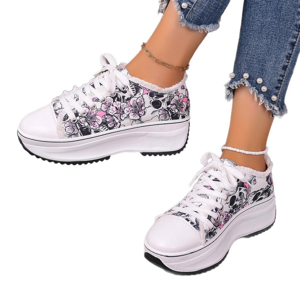 Европейская и американская внешняя торговля новая большая женская обувь 2025 новые парусиновые повседневные спортивные туфли на шнуровке новая обувь с граффити