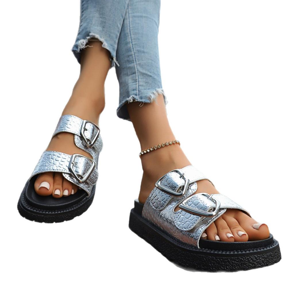 Внешняя торговля большой размер толстая подошва крутые тапочки женские 2025 лето новые повседневные с пряжкой для улицы модные универсальные удобные тапочки