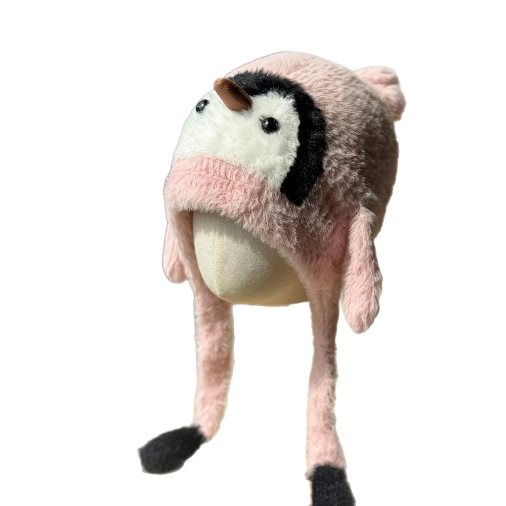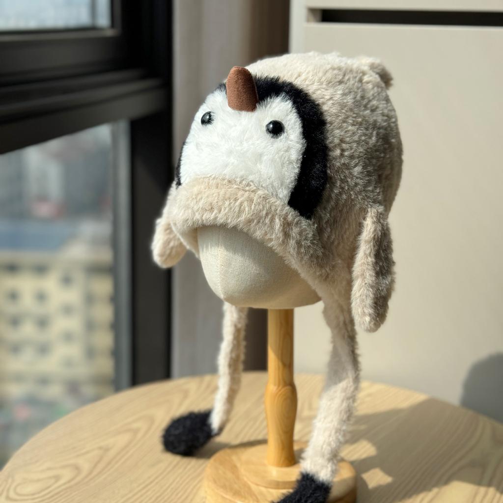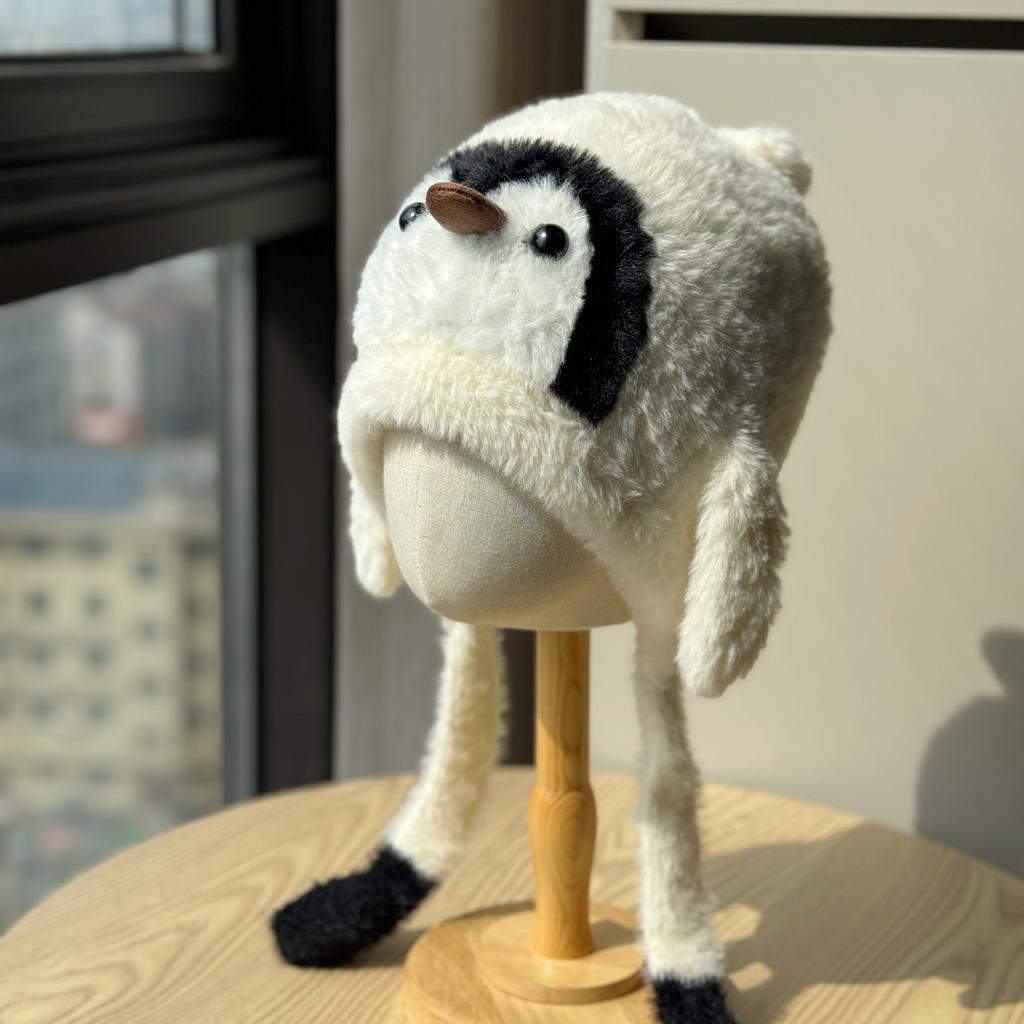 Новая милая плюшевая шапка-пингвин для женщин на осень и зиму, утолщенная и теплая шапка с защитой ушей, универсальная шапка-пуловер, подчеркивающая лицо и делающая его маленьким, вязаная