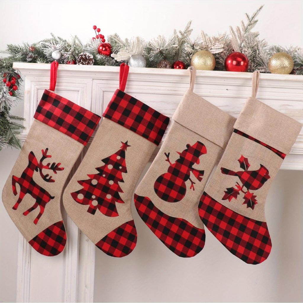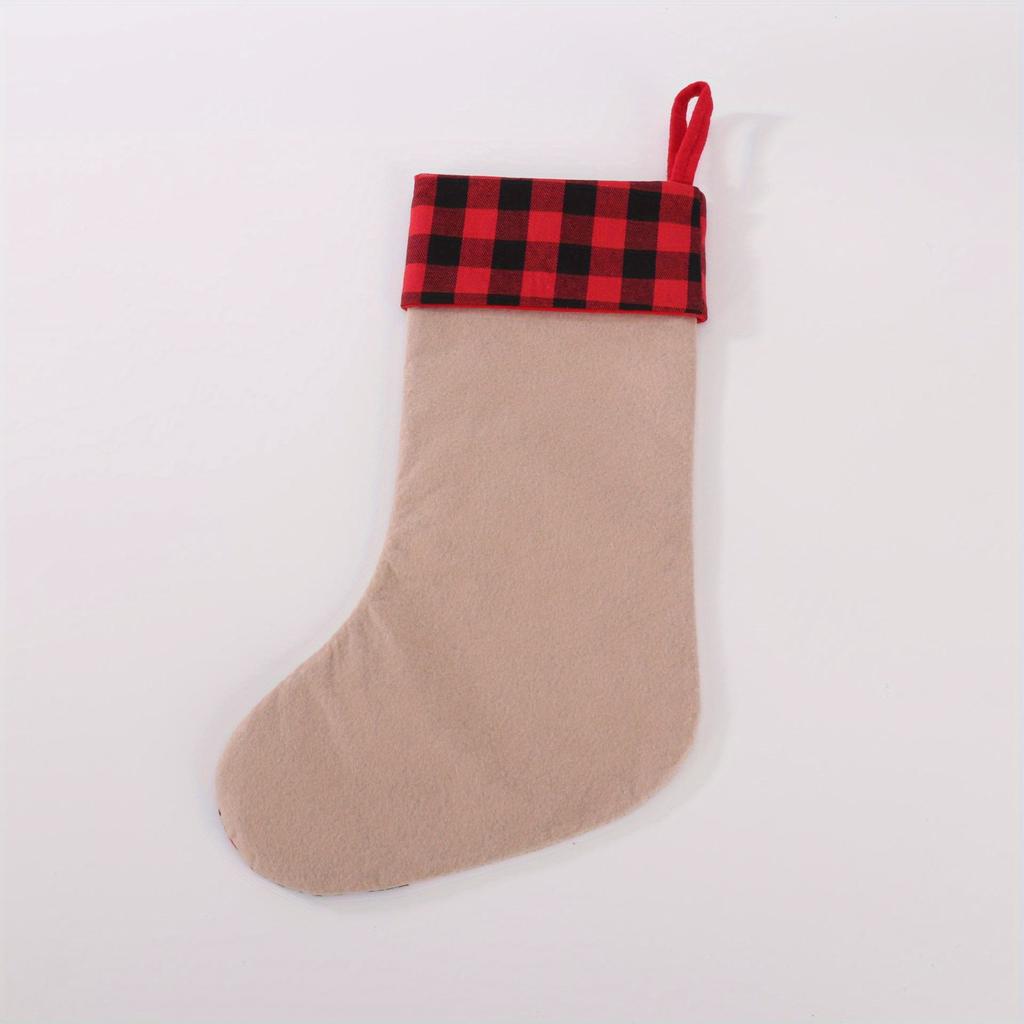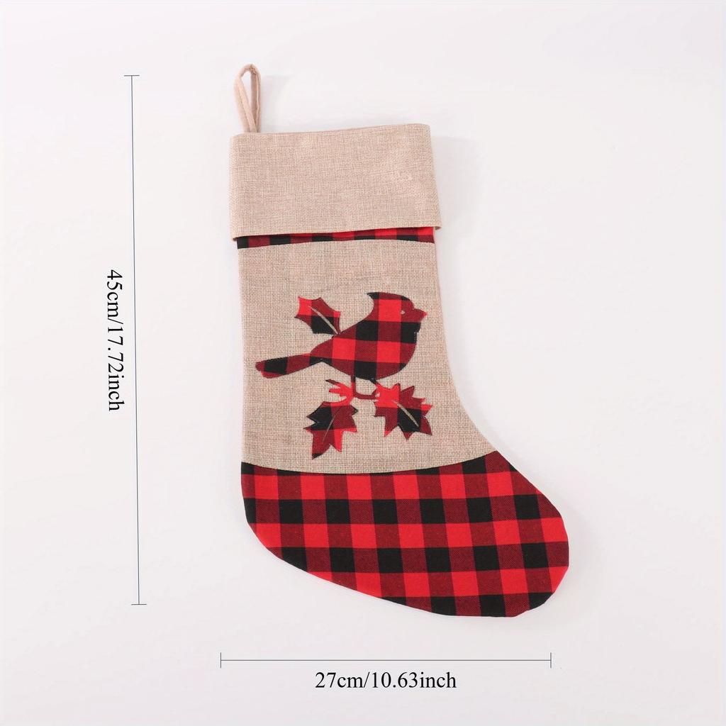 1 шт. Красный и черный клетчатый рождественский чулок из имитации льна с аппликацией и вышивкой, рождественский подарок