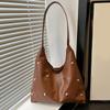 Панк Стиль Украшенная Двусторонняя Круглая Сумка-Ведро с Заклепками, Нишевая Роскошная Сумка, Шикарная Женская Подмышечная Сумка Большой Вместимости, Сумка на Плечо KTY